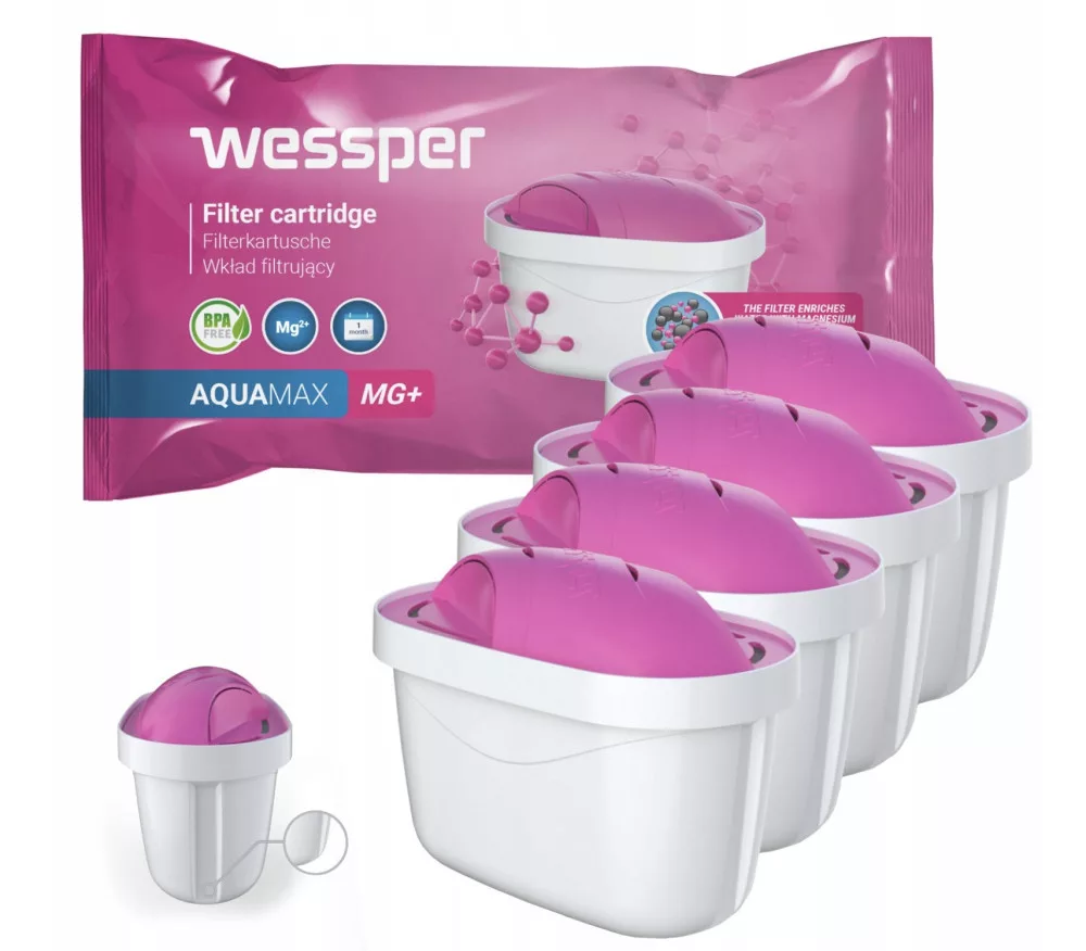 Élvezd a magnéziummal dúsított, tiszta és finom ízű vizet! A Wessper AQUAMAX MG+ szűrőpatronok eltávolítják a szennyeződéseket és csökkentik a vízkövet, miközben javítják az ivóvíz minőségét.